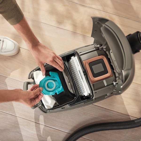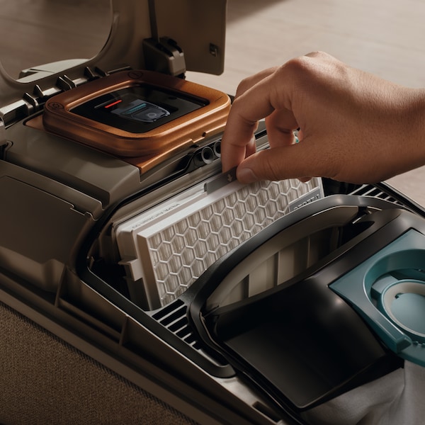 A kiváló minőségű, színes LCD képernyő1 világos képet ad a készülék állapotáról, beleértve a kiválasztott tisztítási üzemmódot, a porzsák töltöttségi szintjét és a kimeneti levegőszűrő telítettségét. Ez a porszívóknál egyedülálló funkció fokozza interakcióját a készülékkel, és megkönnyíti, hogy egyetlen pillantással nyomon kövesse a teljesítményt.