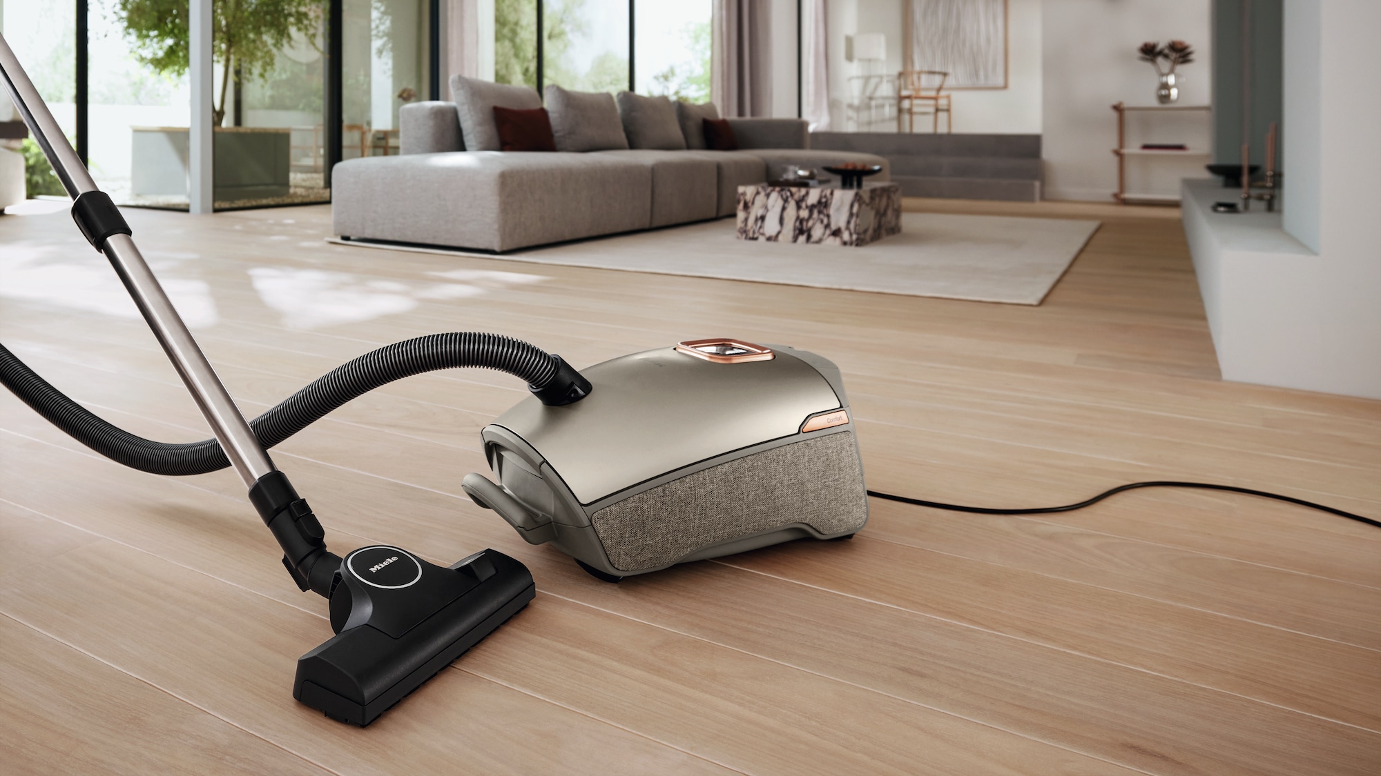 A Guard L1 hűen tükrözi a Miele elkötelezettségét a kivételes teljesítmény és a modern esztétika ötvözése iránt. Egyszínű színkoncepciója, matt és texturált kialakítása, valamint a kifinomult fém dekor elemek biztosítják, hogy tökéletes kiegészítője legyen a modern belső tereknek. A gondosan kiválasztott, csúcsminőségű anyagok a tartósság mellett, egy csipetnyi eleganciát is kölcsönöznek otthonának. A diszkréten integrált tartozéktároló és az intuitív kezelőgombok tovább fokozzák a letisztult, minimalista megjelenést, így a Guard L1 igazi design elem, amely tökéletesen illeszkedik az aktuális élethelyzeteihez.