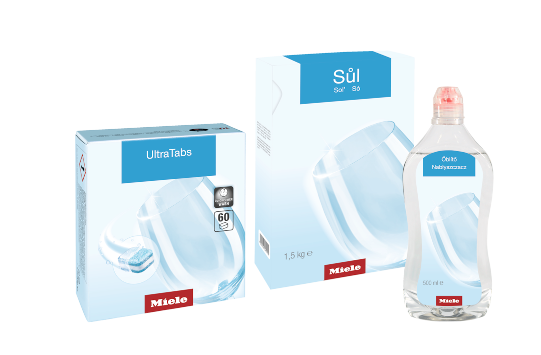 A kifejezetten Miele mosogatógépekhez fejlesztett receptúrákkal biztosan tökéletes lesz a mosogatás végeredménye.