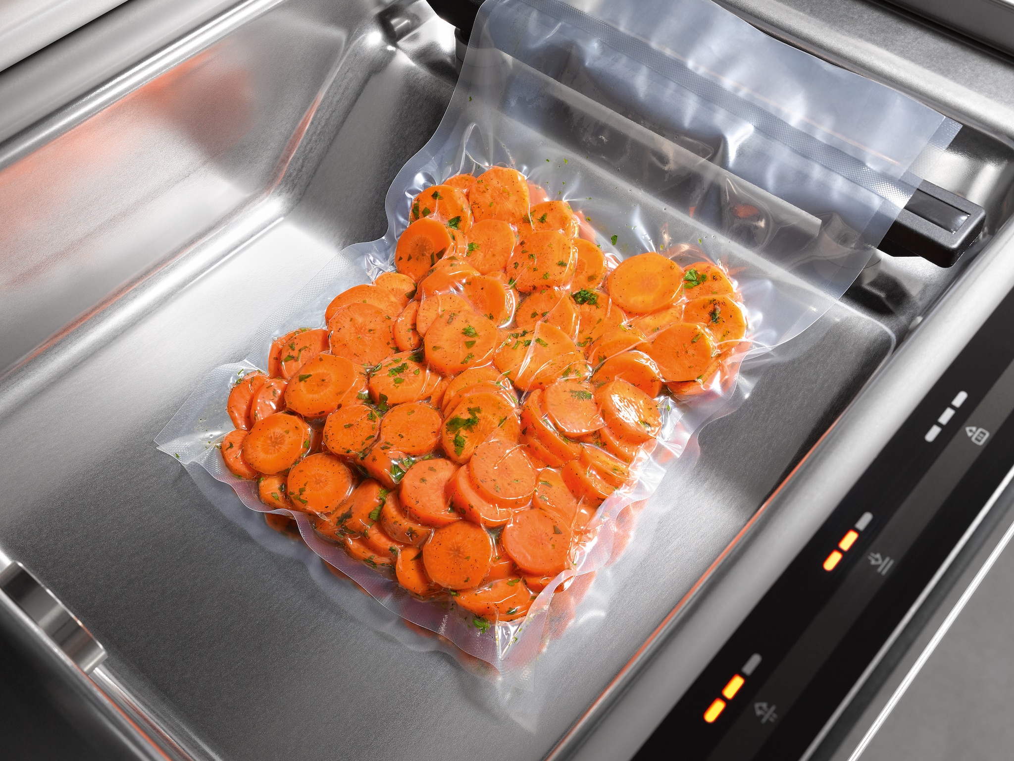 Biztonságos csomagolás: a Miele vákuumtasakok hőállók, nem légáteresztők és ízre semleges hatásúak.
